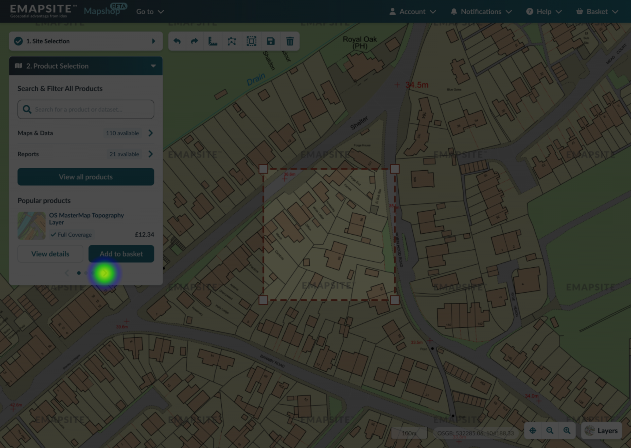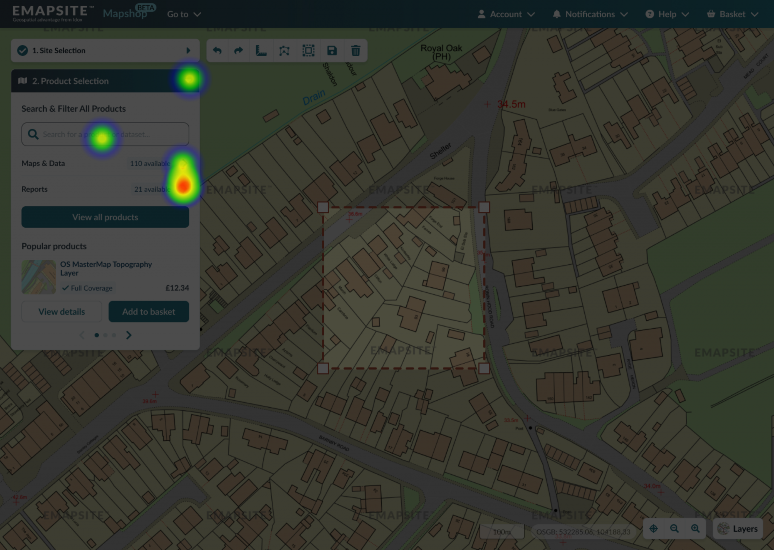 The next iteration of Mapshop enabled users to reliably locate specific reports while servicig current users of the mapshop trying to find Data Downloads. Clear links associated with product search and an easily navigable product slider showed beneficial in testing with data suggesting that although time on task increased, better quality task completion was obtained as 100% of users successfully completed the task fo pretending to purchase a report. A stark contrast to the 60% that completed the task under the current site conditions.