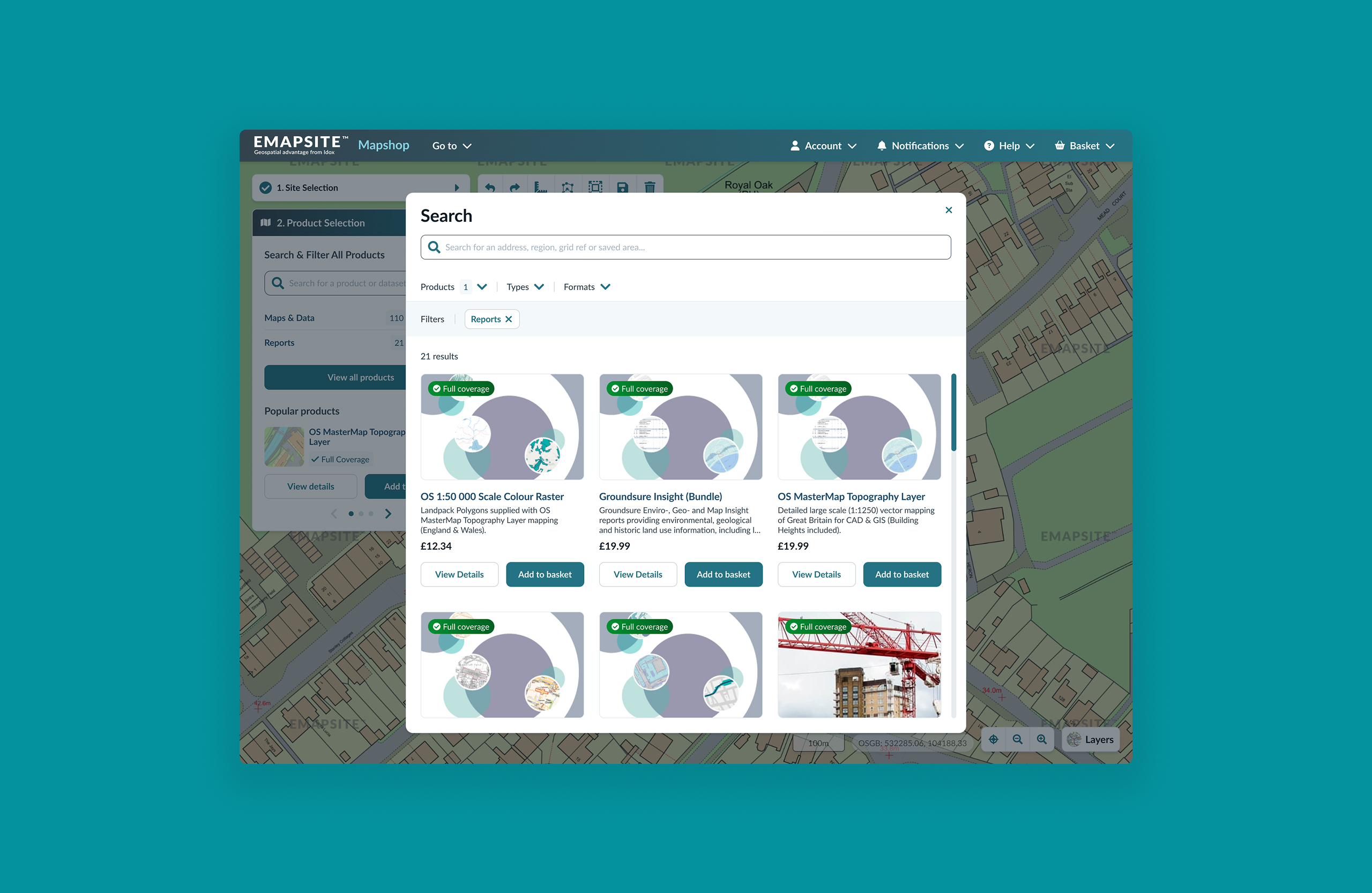 The project aimed to merge two distinct online marketplaces into a single, cohesive platform. One platform was being retired as it relied on old technology, while the other platform drove around 90% of the revenue for Idox Geospatial. Each marketplace had its own user base, interface patterns, and product structures, which presented a key challenge: how to ensure users from both systems could confidently and intuitively find the products they needed without friction.